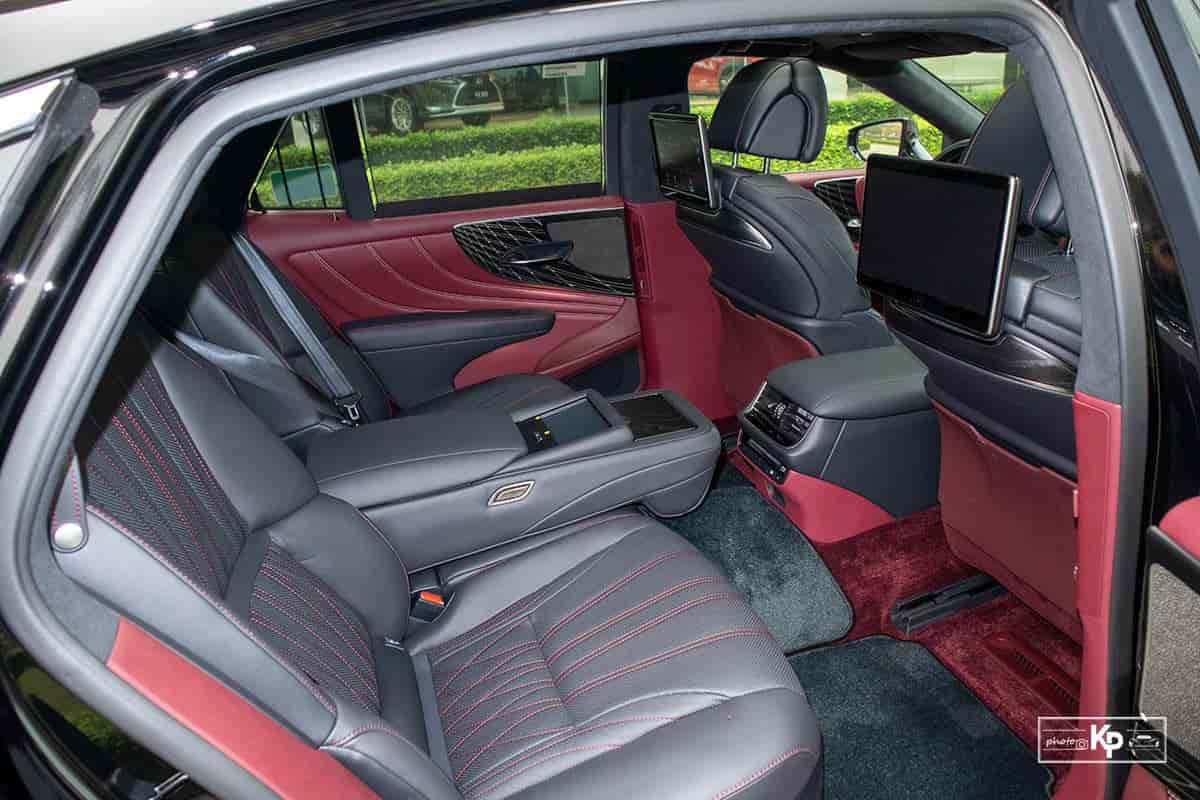 Khác với đầu và thân xe, phần đuôi xe Lexus LS này gần như không có sự thay đổi với điểm nhấn thu nhất là cụm đèn hậu LED đồ hoạ gồm nhiều chữ “L” lồng vào nhau. Bên dưới là hệ thống ống xả kép vuông vắn mạ crom sáng bóng.